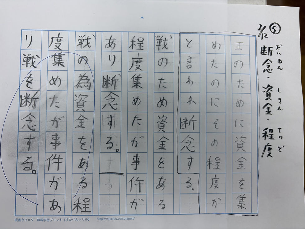 柱の一つとなっている「三語短文」(※ある塾長に教えていただいたものです)。